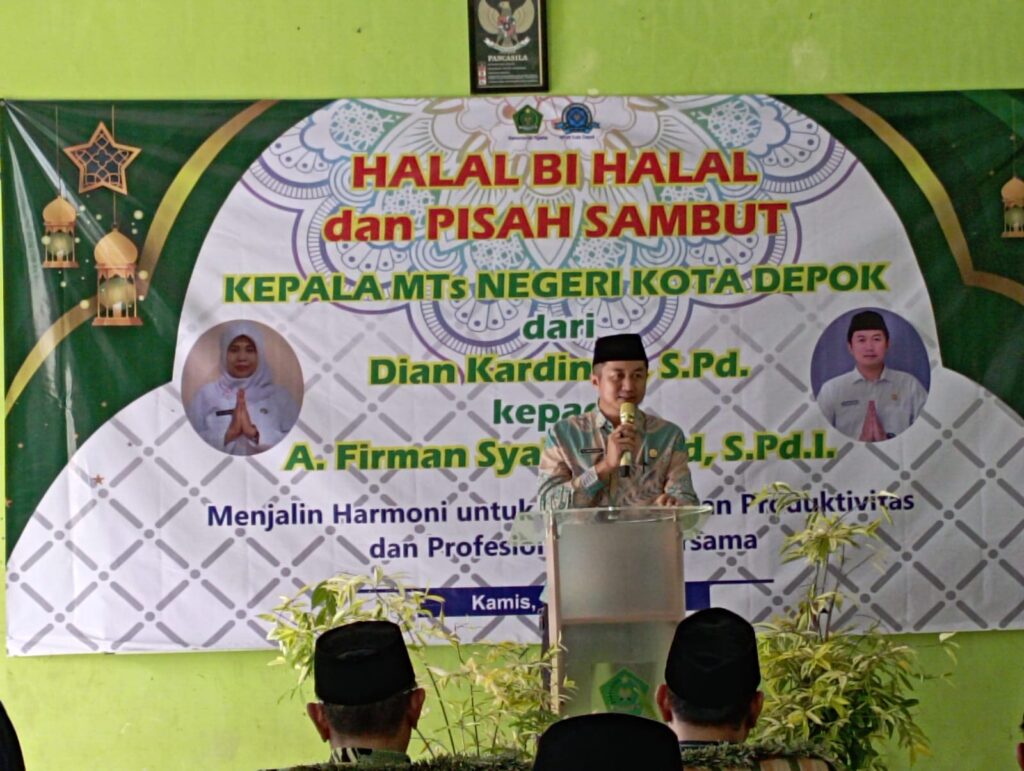 Depok, 10 April 2025— Suasana hangat dan penuh kekeluargaan menyelimuti kegiatan Halalbihalal dan Pisah Sambut yang digelar di Aula MTsN Kota Depok pada hari Kamis, 10 April 2025. Acara ini menjadi momentum penting untuk mempererat tali silaturahmi usai Hari Raya Idulfitri 1446 H sekaligus sebagai ajang penghormatan dan apresiasi atas pengabdian pejabat yang berpindah tugas.