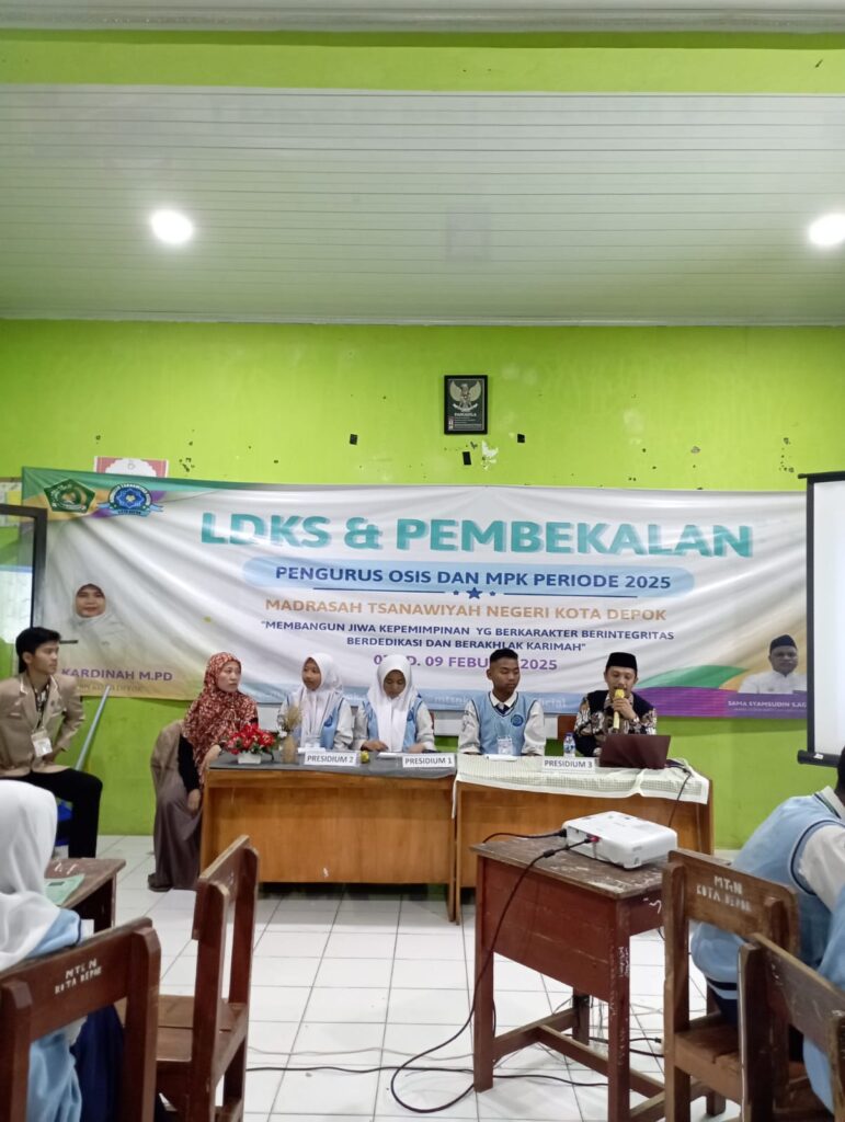 Depok, 10 Februari 2025 – MTsN Kota Depok kembali menggelar Latihan Dasar Kepemimpinan Siswa (LDKS) dan Pembekalan Pengurus OSIS/MPK sebagai bagian dari upaya membentuk pemimpin muda yang berkarakter. Acara ini mengusung tema “Membangun Jiwa Kepemimpinan yang Berkarakter, Berintegritas, Berdedikasi, dan Berakhlak Karimah”.